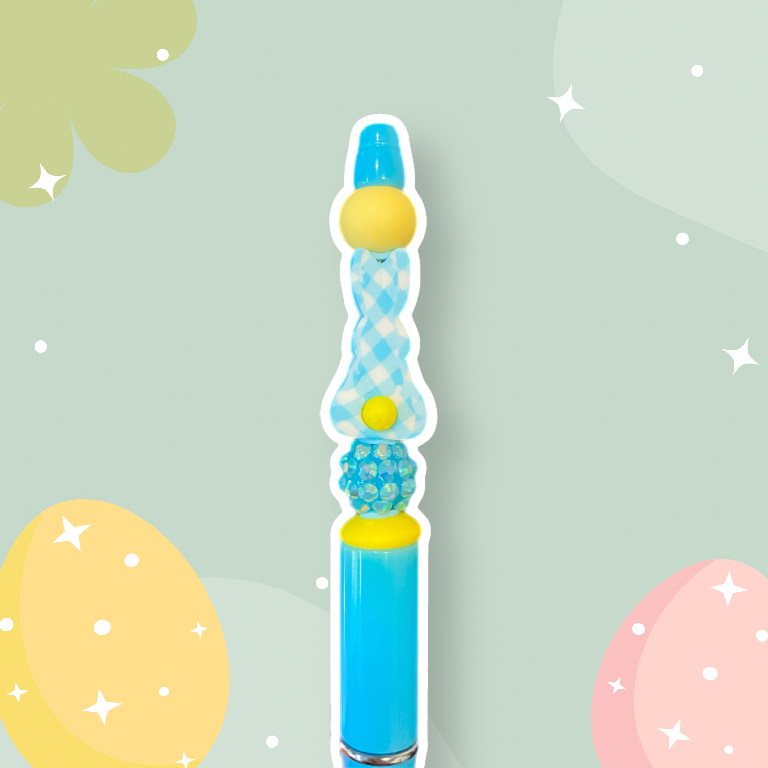 "Write, draw and hop with Bunny Blues - the pen that will bring a smile to your face (and a hop to your step)! Featuring a fun bunny focal bead in a cool blue color, accented with sunny yellow details. Express yourself with playful style!"