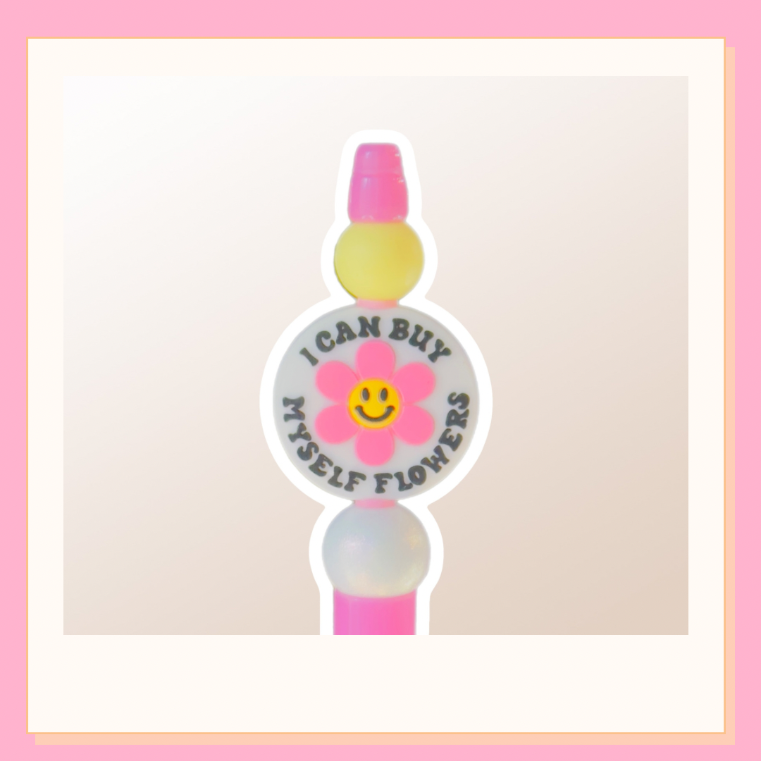 Introducing the pen with a purpose! The I Can Buy Myself Flowers pen from Miley Cyrus gives you the power to write your own story and accompanying soundtrack. With a smooth ballpoint tip, you'll be ready to pen your boldest ideas — just don't forget the words to the song! Now you can be a songwriting superstar and flower connoisseur!